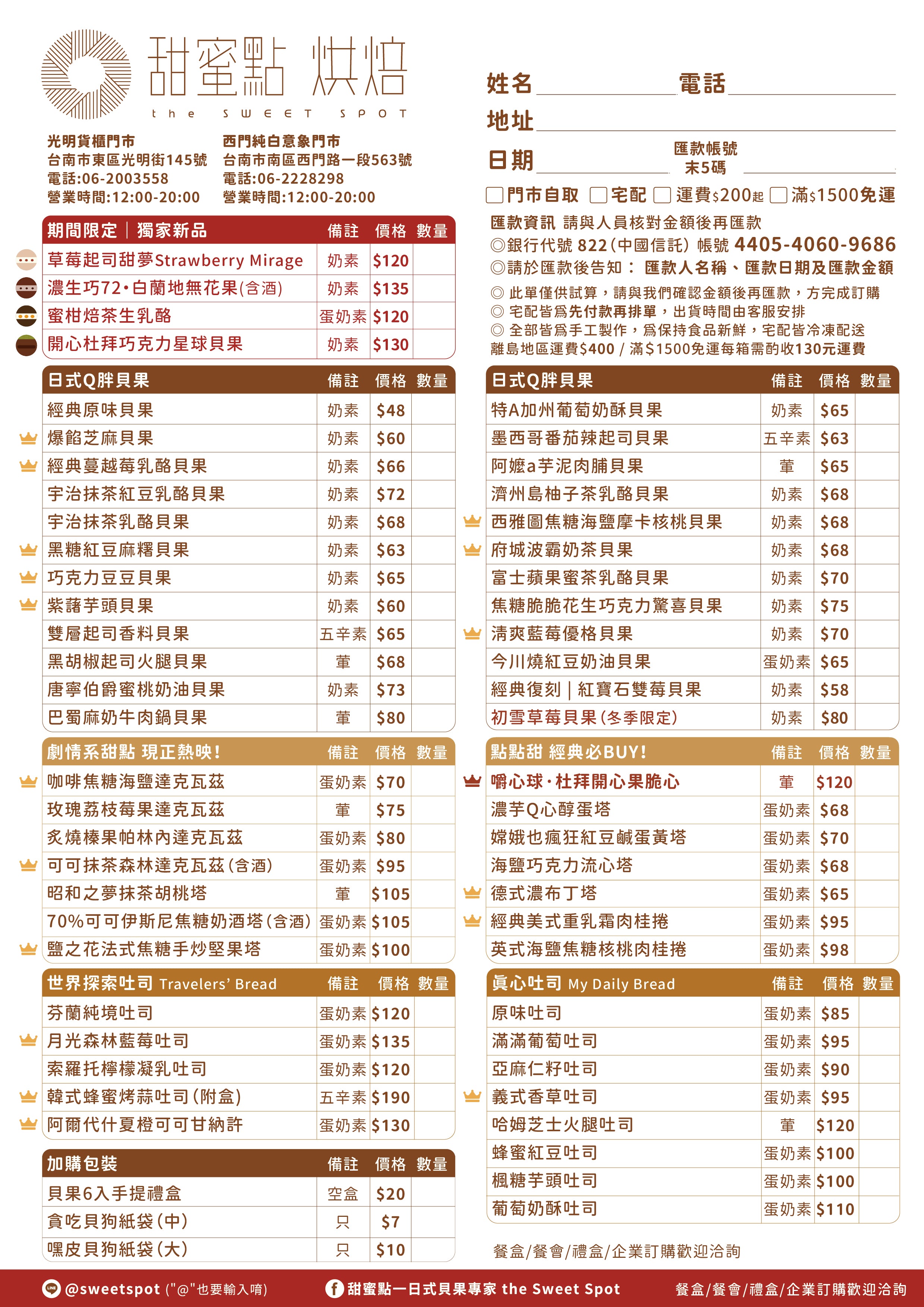 填好菜單後,私訊客服為您預留