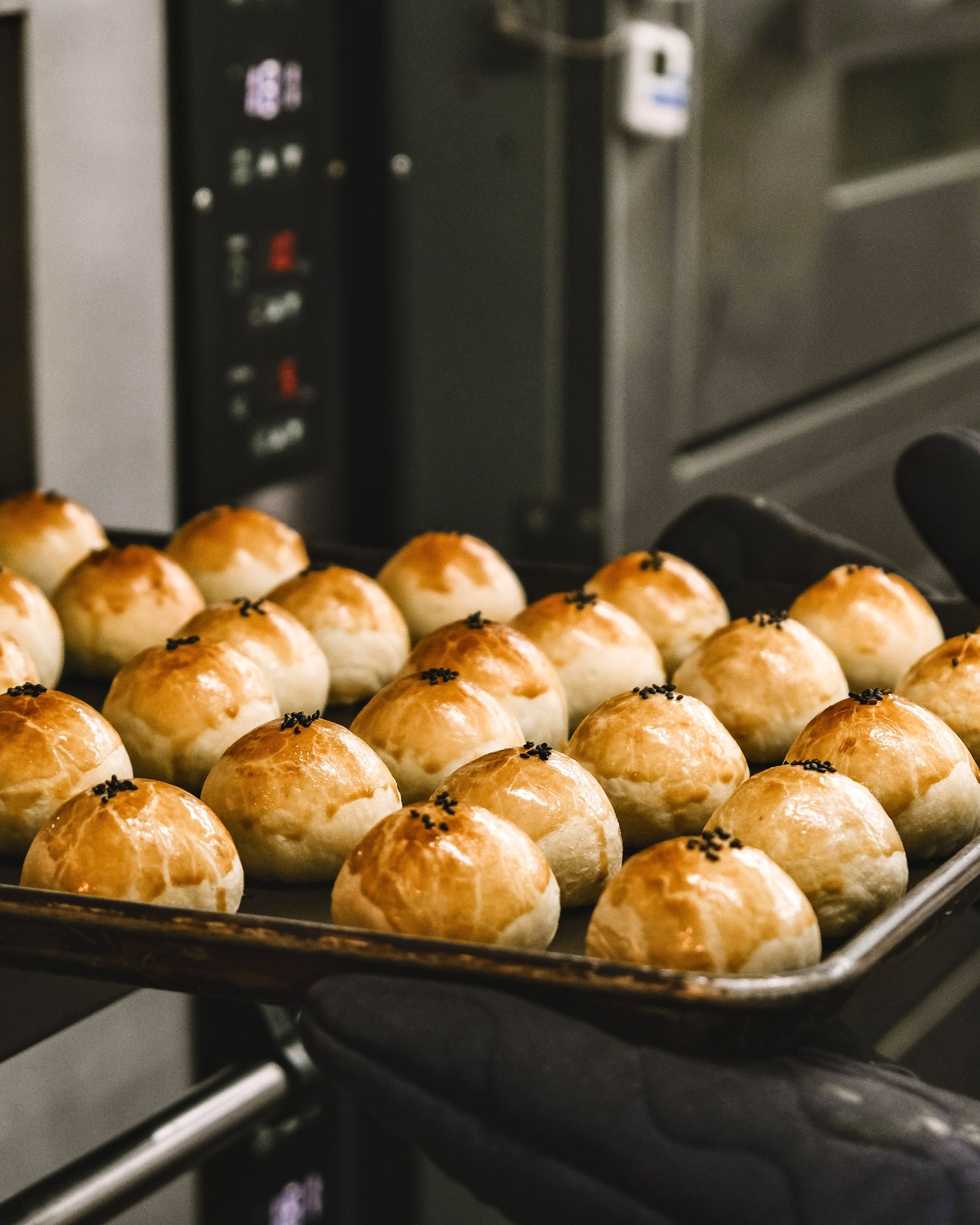 濃郁鹹香蛋黃佐以高品質發酵奶油、手打奶皇餡料,風味精緻。使用特殊技法製作的流心餡,外酥內絲滑,加熱後更顯高級口感,最正宗的粤式茶樓美味甜品! -