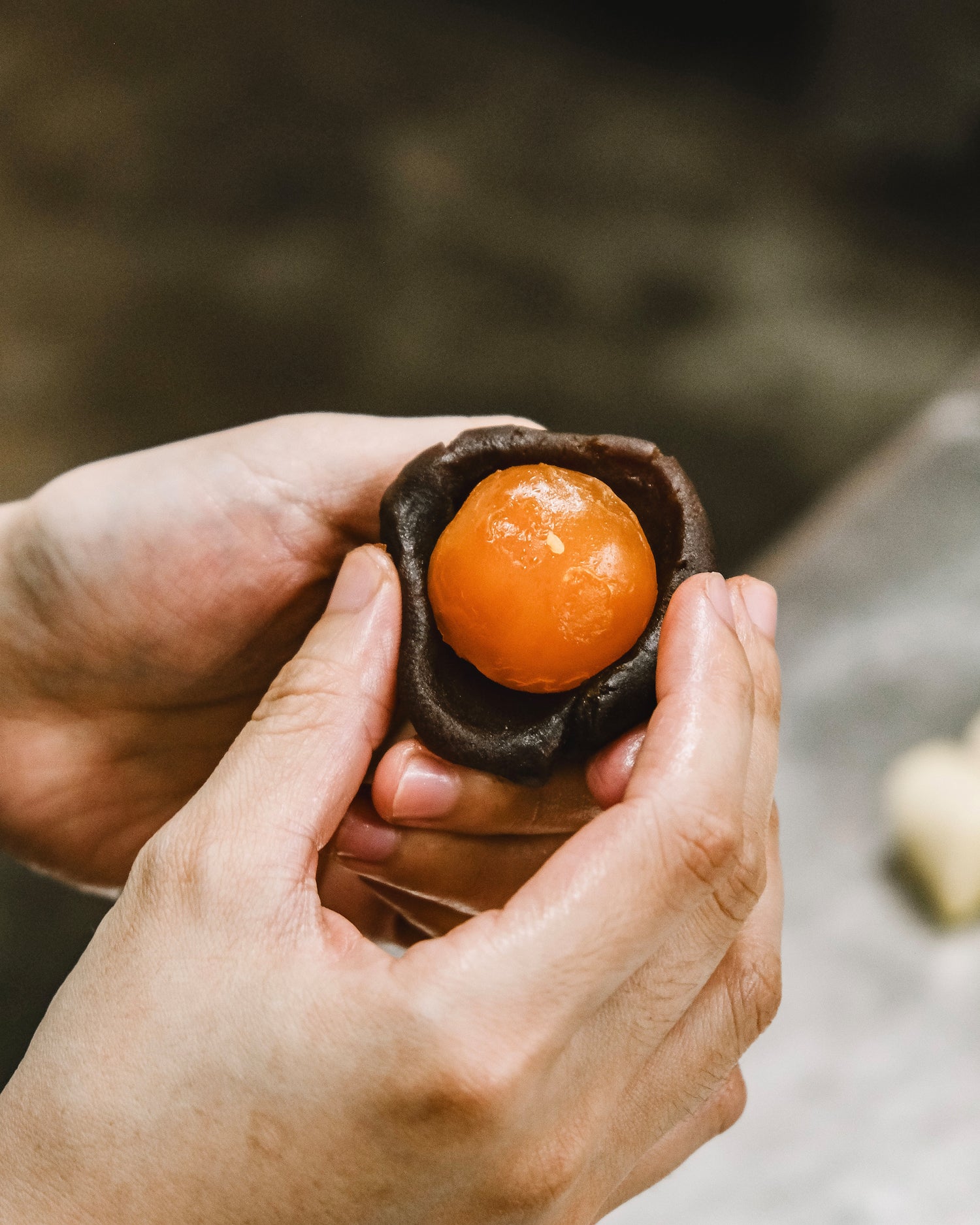 大粒飽滿的古法醃製鴨蛋,富含飽滿濕度與油膏香氣濃郁,口感綿密。配上萬丹熬製豆沙,不會過於甜膩的糖度調製,使豆沙與蛋黃達到完美平衡。 -