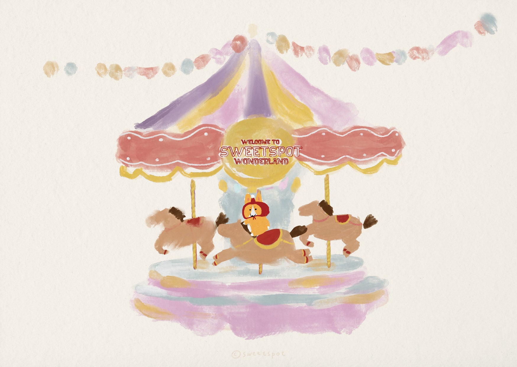 以旋轉木馬與遊樂園為靈感,局部燙金在光線下閃閃發亮,如同被點亮的小小樂園